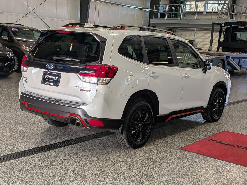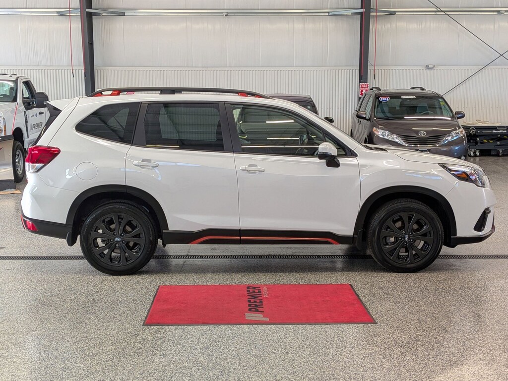 1 OWNER ACCIDENT FREE VEHICLE HISTORY, YOUR CHOICE! EITHER SUBARU CERTIFIED OR A LIFETIME POWERTRAIN WARRANTY!, * HARMON/KARDON AUDIO SYSTEM, Forester Sport, 2.5L 4-Cylinder DOHC 16V, Lineartronic CVT, AWD, Crystal White Pearl, Gray Cloth, 3.70 Axle Ratio, 4-Wheel Disc Brakes, 8" Audio w/harman/kardon & RAB & Power Rear Gate, Air Conditioning, Auto High-beam Headlights, Automatic temperature control, Brake assist, Bumpers: body-color, Driver door bin, Driver vanity mirror, Dual front impact airbags, Electronic Stability Control, Emergency communication system: STARLINK Safety and Security (Subscription Required), Exterior Parking Camera Rear, Four wheel independent suspension, Front Bucket Seats, Front reading lights, Fully automatic headlights, harman/kardon 9-Speaker Audio System, Heated door mirrors, Heated Front Bucket Seats, Heated front seats, Illuminated entry, Knee airbag, Leather Shift Knob, Occupant sensing airbag, Overhead console, Panic alarm, Passenger door bin, Passenger vanity mirror, Power door mirrors, Power moonroof: Panoramic, Power Rear Gate, Power windows, Radio: Subaru Starlink 8.0" Multimedia Plus System, Rear anti-roll bar, Rear seat center armrest, Rear window defroster, Rear window wiper, Reverse Automatic Braking System (RAB), Roof rack: rails only, Security system, Splash Guards, Spoiler, Sport Cloth Upholstery, STARLINK/Apple CarPlay/Android Auto, Steering wheel mounted audio controls, Tachometer, Traction control, Trip computer, Turn signal indicator mirrors, Variably intermittent wipers, Wheels: 18" x 7.0 J Black Finish Aluminum-Alloy. Certified.